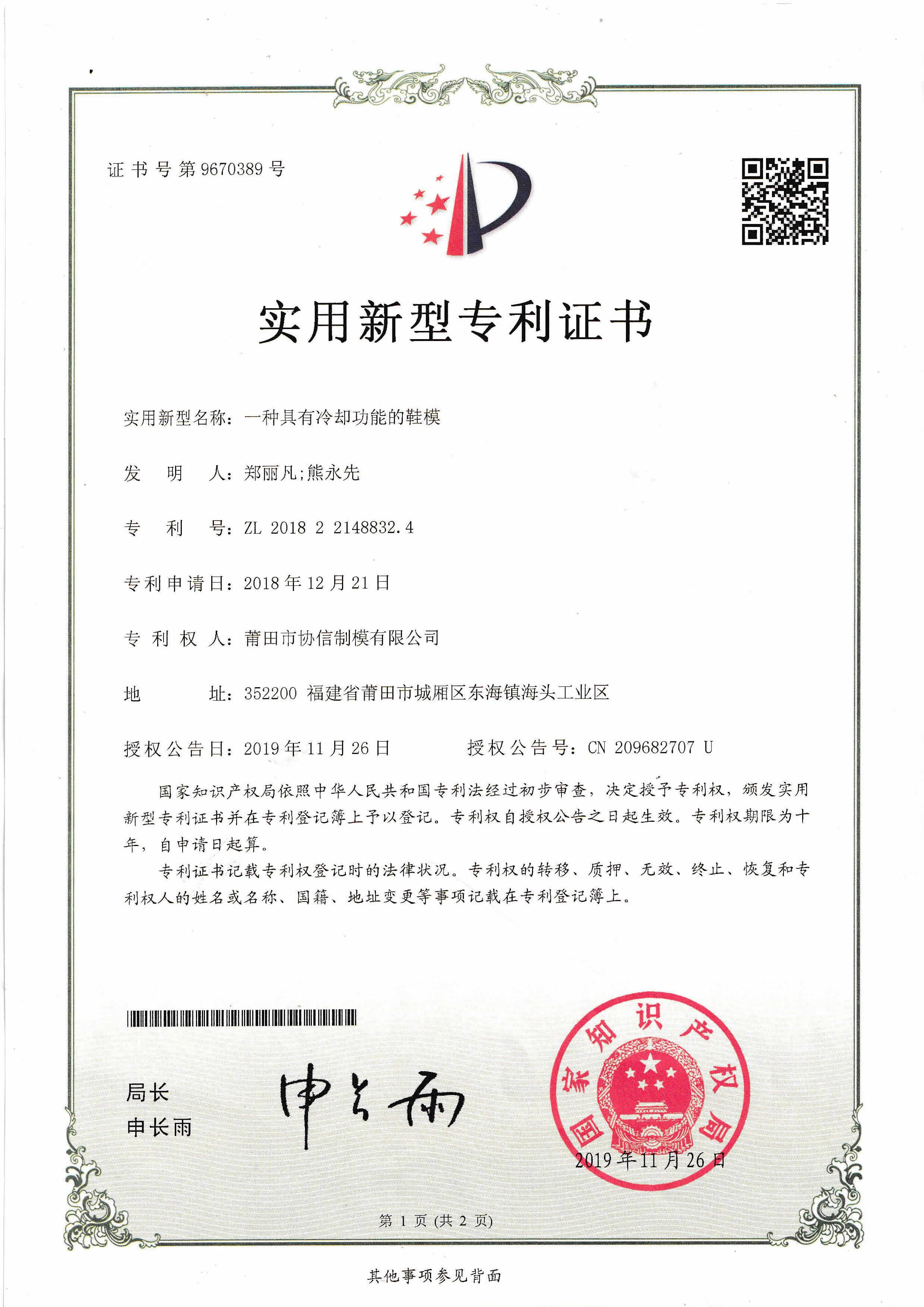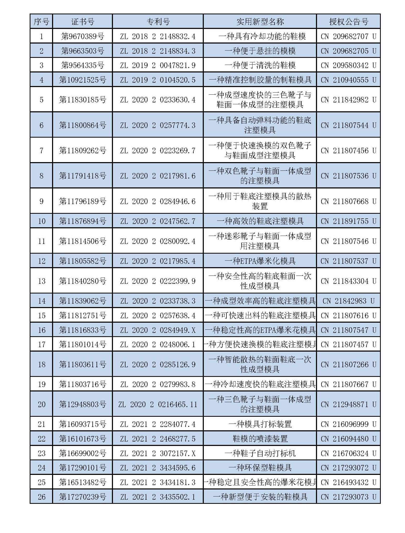 公司自成立以來,始終堅持以客戶需求為導(dǎo)向,依靠科技求發(fā)展,高度重視并且持續(xù)加大研發(fā)投入,組建技術(shù)中心,引進(jìn)先進(jìn)的技術(shù)開發(fā)設(shè)備:CNC高精度數(shù)控機床、光固化3D打印機設(shè)備、進(jìn)口平面大銑床,精密平面雕刻機,單/雙頭放電機等各類高精度設(shè)備等近200多臺。通過多年的努力,目前公司已取得20項專利,并實現(xiàn)了專利成果轉(zhuǎn)化,為公司開拓市場,提高核心競爭力,提供了強有力的科技支撐。 公司以獨特的生產(chǎn)工藝和雄厚的開發(fā)力量,贏得了廣大制鞋企業(yè)的支持和信賴,產(chǎn)品目前主要銷往莆田、泉州、廈門、廣東省等地方,主要合作伙伴有李寧、迪卡儂、巴拉巴拉、銳步、斯凱奇、K.SWISS等世界知名品牌。協(xié)信以服務(wù)現(xiàn)有客戶、研發(fā)新型鞋類技術(shù)或非鞋類產(chǎn)品為主,致力于給所有中外客戶提供專業(yè)的品質(zhì)、高效的交期和一流的服務(wù)!